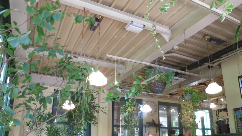 天井からは、植物が吊り下げられています。写真で見ると天井が無機質に感じますが、店内だとほとんど気にならず、むしろ緑に囲まれている感じです。