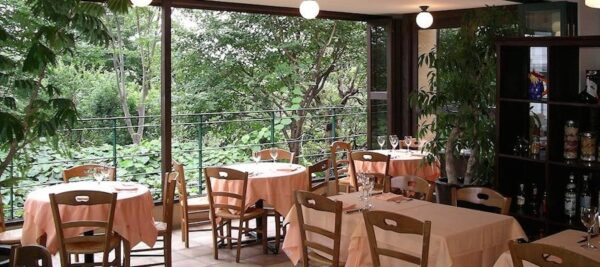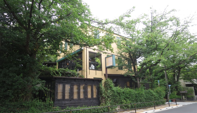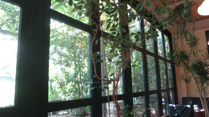 まず、窓側の席から外を眺めたところです。窓が大きく、緑あふれるお庭に面していて、東京とは思えない、本当に別世界です。
