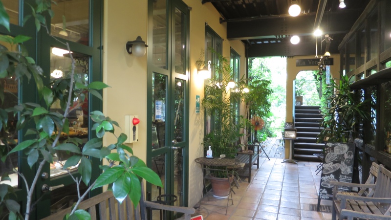 入口から中に入っていきます。左側は、カフェとベーカリーです。