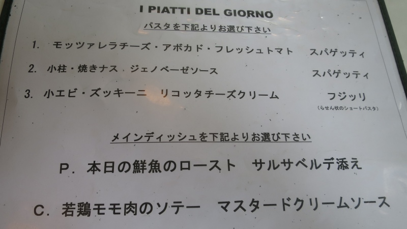 パスタは3種類からの選択、メインは魚か肉からの選択です。