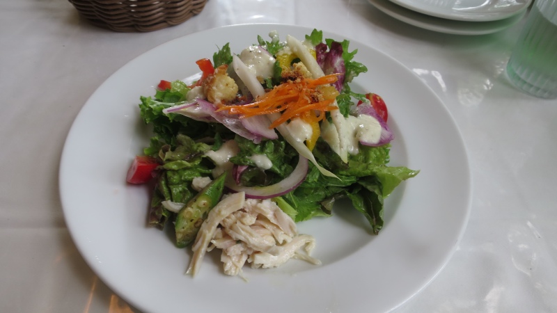 思ったよりもしっかりと量があります。レタスやプチトマトなど野菜とともに、鶏肉が乗っていて、美味しくいただきました。