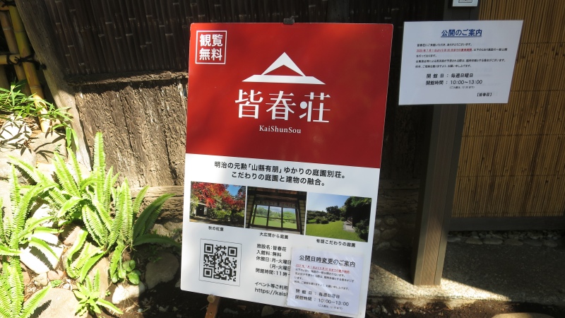 入口に、「皆春荘」の額が掛けられていました。山縣有朋の自筆と言われているそうです。
