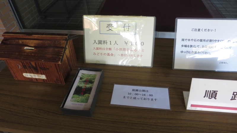 あいおいニッセイ同和損保の研修所になっていて、日曜日だけ、庭園を見ることができます。といっても、入口も無人で、入園料100円を入れ物に入れ、パンフレットを取って、建物の脇から庭園に向います。