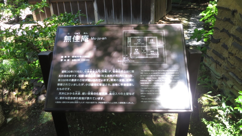 登ったところにあるのが、「無住庵」。国登録有形文化財だそうです。パンフレットによれば、昭和30年に、築200年の農家の古材を利用して建てられ、その後、近隣の民家に移築されていたものが小田原市に寄贈され、令和2年に移築復元されたのだそうです。