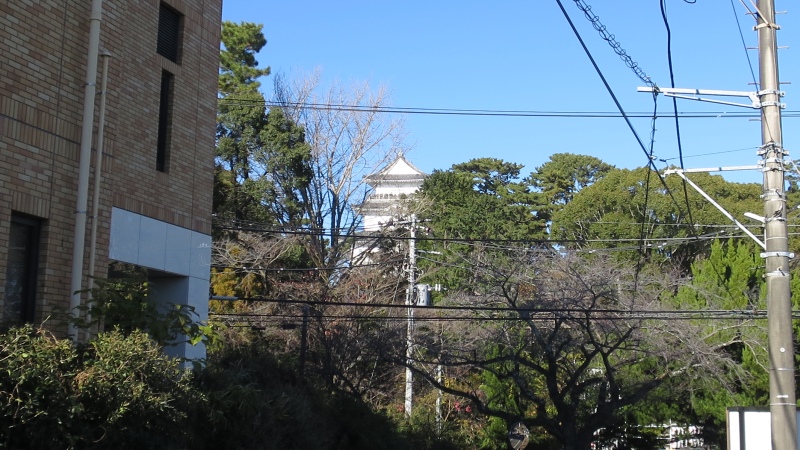 駐車場から、小田原城の天守閣が見えます。