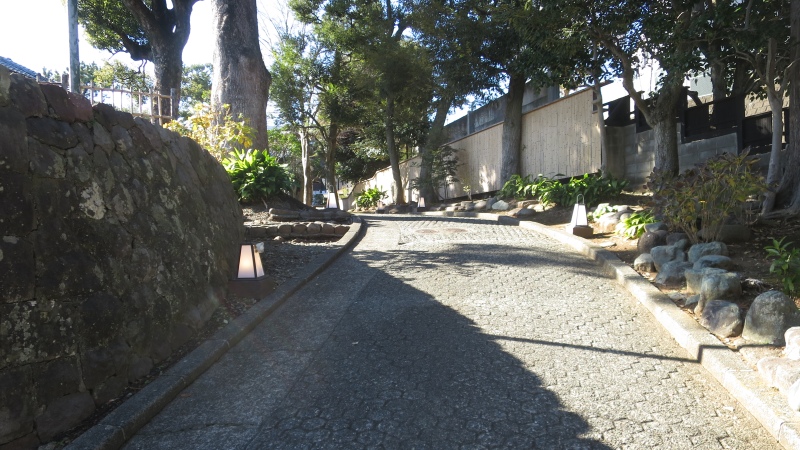 敷地の中で、さらに坂を上っていきます。建物は、この坂を上った先の左側です。