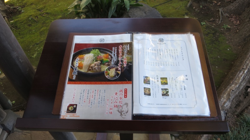 「小田原別邸料理清閑亭」。入口にメニューが出ています。