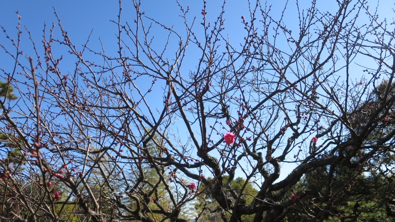 そして、梅が数輪咲き始めていました。日当たりが良くて、暖かいのかもしれません。