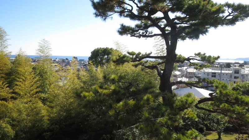 お店の人の説明によれば、一夜城側を楽しむため、海側は目隠しになるように目の前に松を植えたそうです。