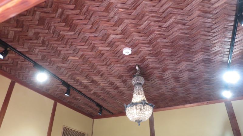 待合室の天井とシャンデリアです。これも、当時のもののようです。