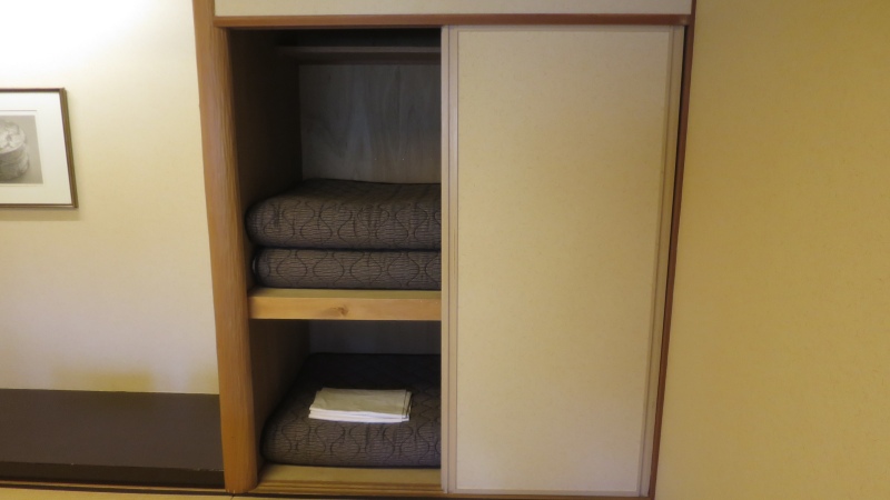 押入れ。右側には、掛け布団と枕が入っています。