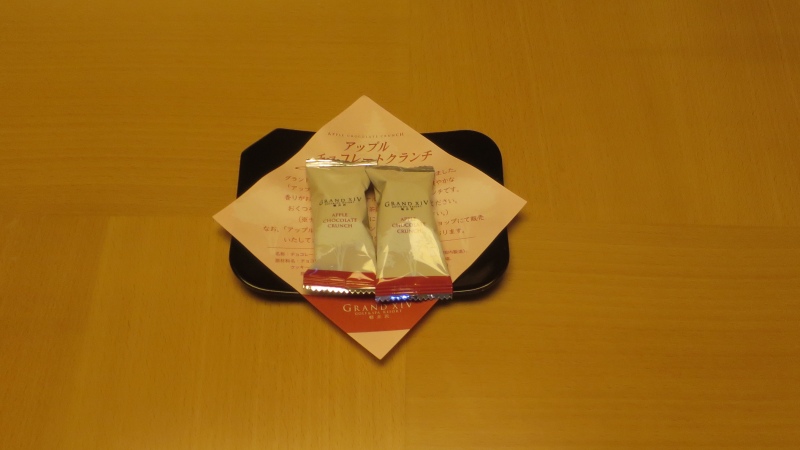 机の上には、お菓子です。「アップルチョコレートクランチ」でした。