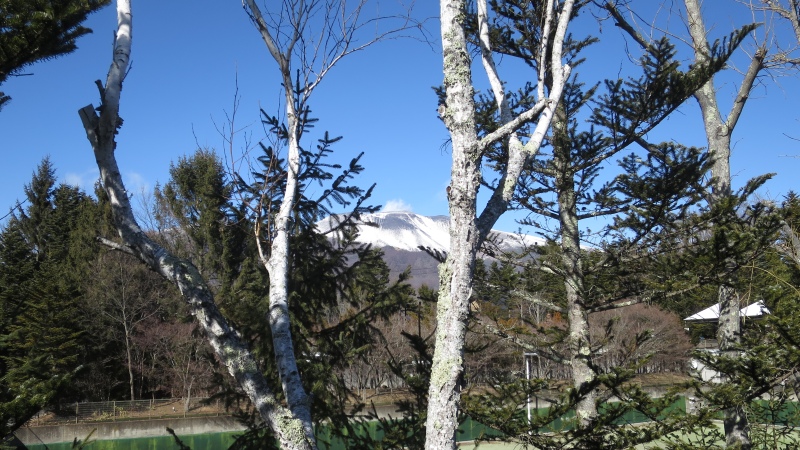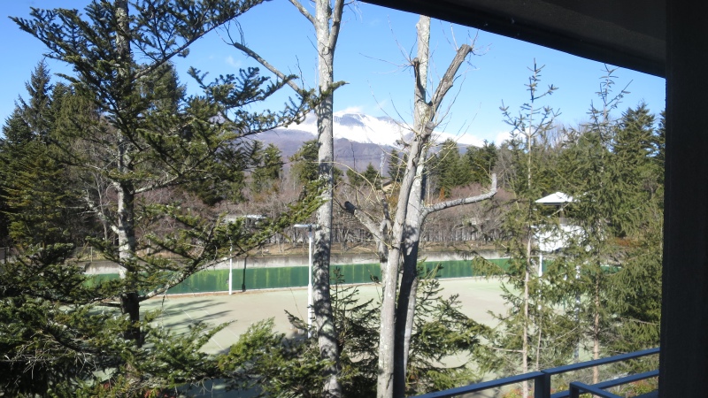 お部屋からは、テニスコート越しに、浅間山が見えます。