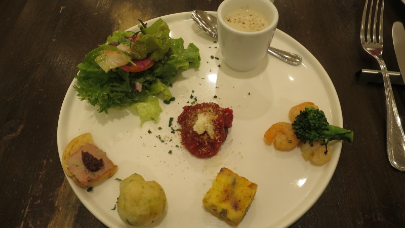 まず前菜盛り合わせ。いろいろと乗っていて楽しいです。