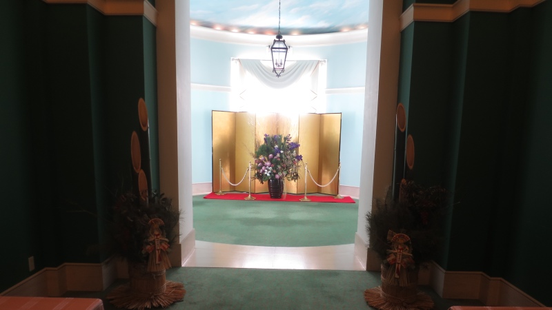 そして、その奥の方には、金屏風にお正月の飾りが輝いていました。