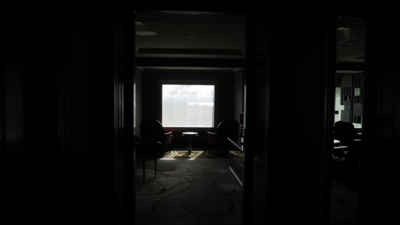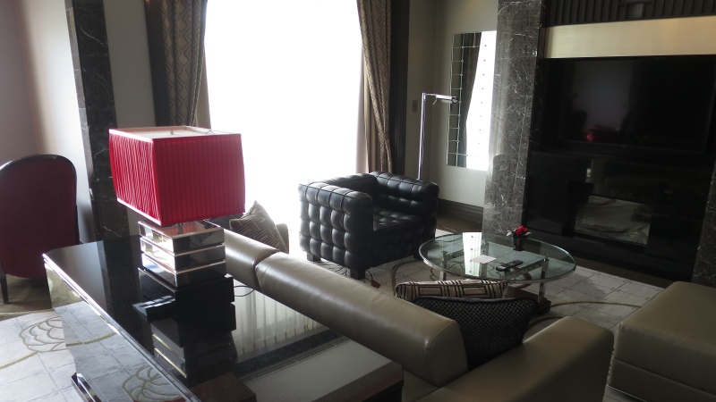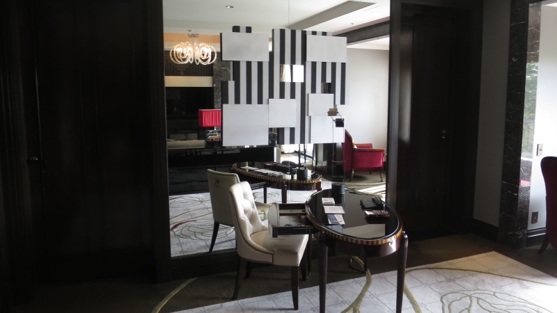 デスクの脇の壁は鏡になっていて、ソファーのスペースが見えます。