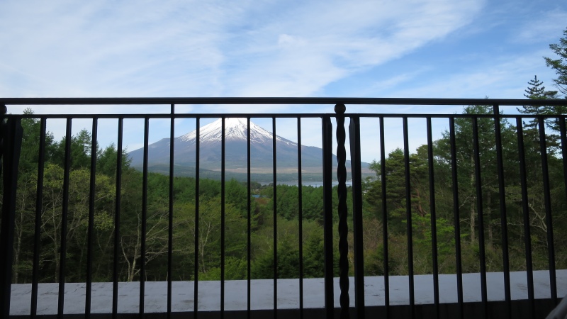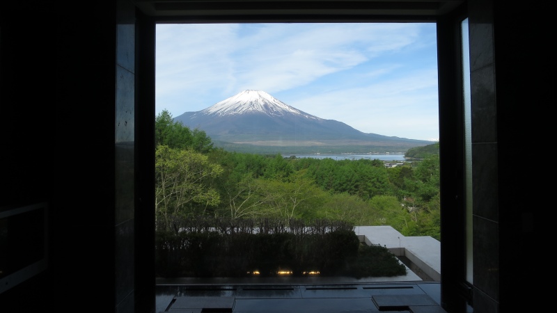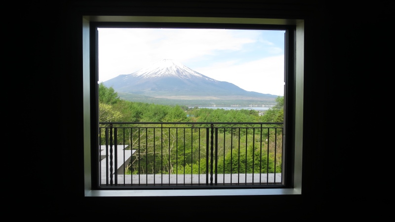 そして、ブラインドを開けると、そこには、富士山と山中湖。
