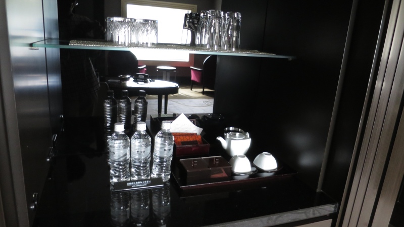 上には、お湯呑や急須、グラスやお菓子が置かれています。