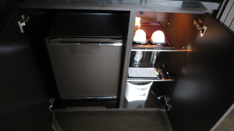 その下には、冷蔵庫と追加のお湯呑やポットなど。