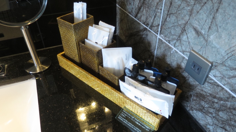 洗面台の左右には、アメニティが置かれています。