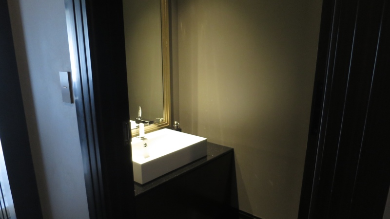 暗くてわかりづらいですが、正面の鏡の両脇に、それぞれドアがあります。