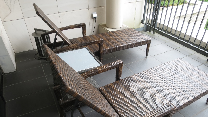 リビングルームから外に出ると、バルコニーには、デッキチェアがあります。