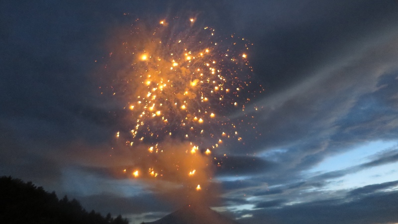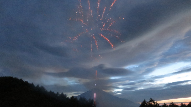 富士山をバックに、花火が打ちあがります。
