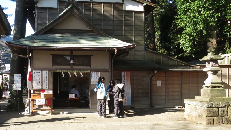 反対側は、社務所です。この日は、お守りやおみくじ、お正月仕様の御朱印「正月限定朱印」などの頒布をしていました。