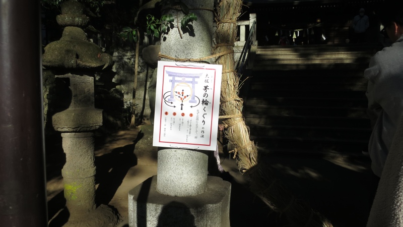 「茅(かや)で編まれた輪をくぐることで、心身を清める伝統的な儀式」で、「左回り1回、右回りに1回、左回りに1回、計3回」くぐるのだそうです。