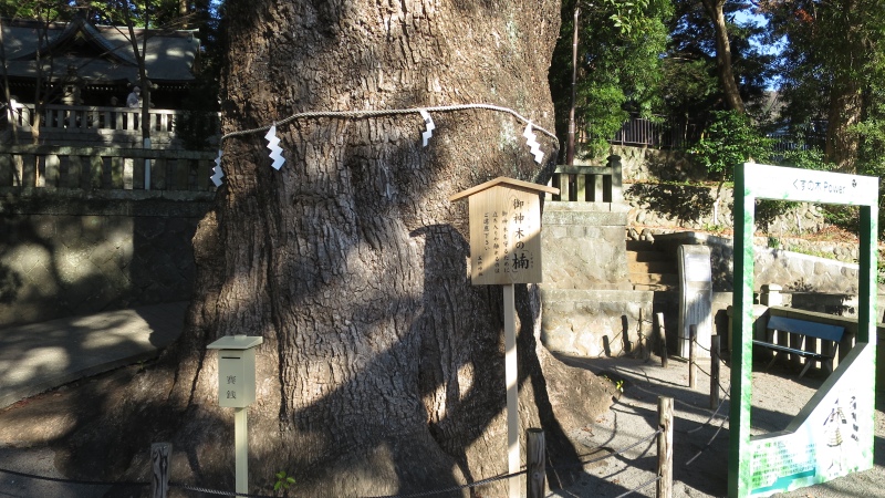 昔は五所神社の境内が広かったそうで、この楠は、その参道にあったもののようです。
