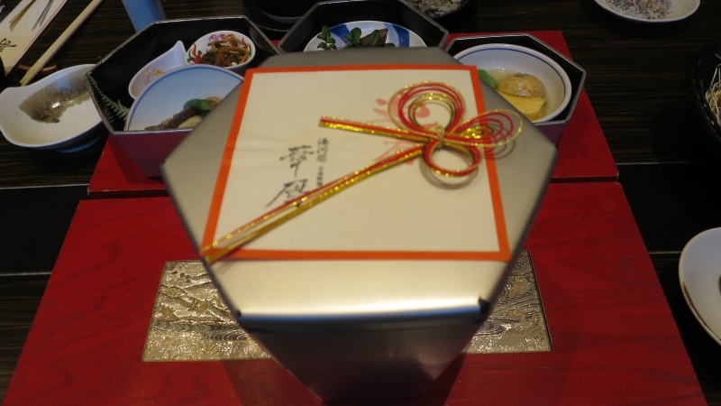 お料理は、いつものお重に、「迎春」の飾りが乗って出てきます。