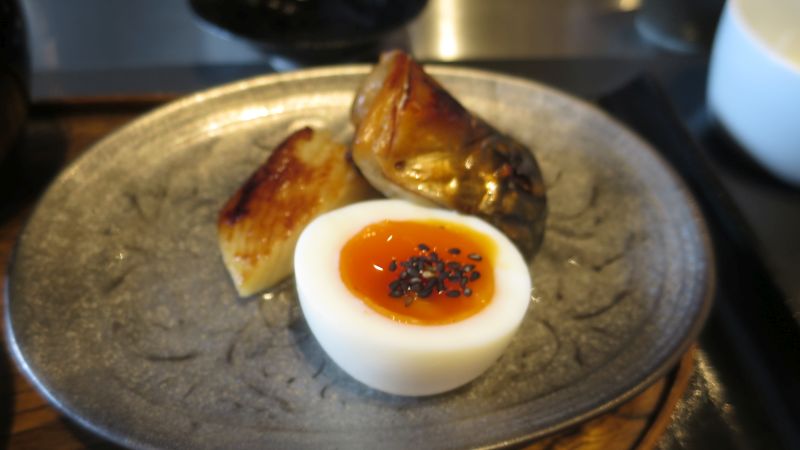 カレイに煮卵。カレイが美味しく、煮卵も味がしっかりとついていてよかったです。