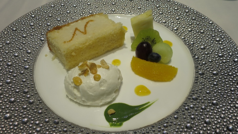左奥が「きな粉と米粉のシフォン」。上の「N」は、中田料理長のNですかね。そんなにきな粉は感じませんでした。