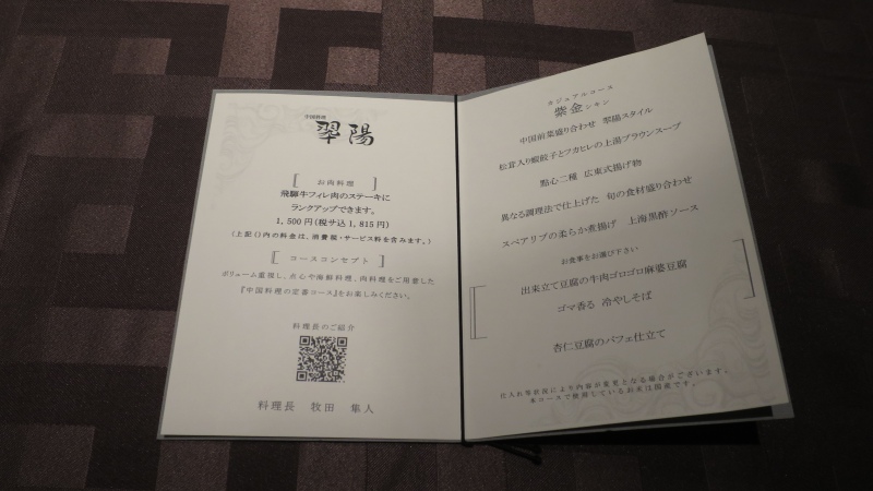 湯河原離宮の中国料理翠陽の紫金。8,800円(税サ込10,648円)です。
