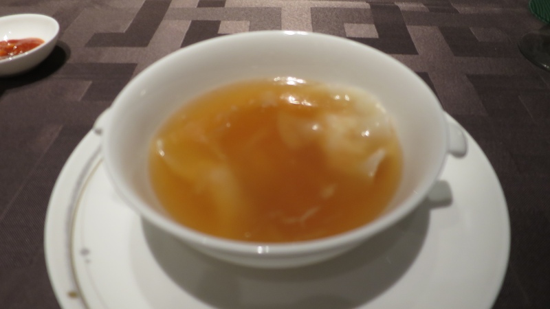 「松茸入り蝦餃子とフカヒレの上湯ブラウンスープ」です。