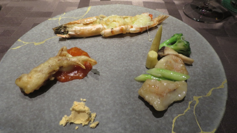 「異なる調理法で仕上げた 旬の食材盛り合わせ」です。