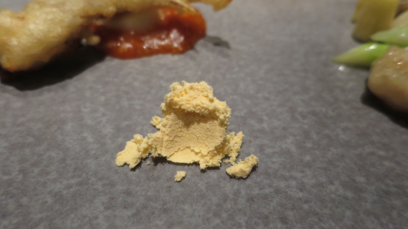 お魚です。こちらは、特製の豆板醤をつけていただきました。
