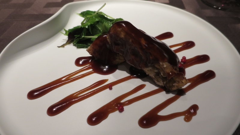 「スペアリブの柔らか煮揚げ 上海黒酢ソース」です。
