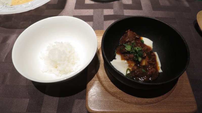 そして、こちらが麻婆豆腐。「出来立て豆腐の牛肉ゴロゴロ麻婆豆腐」ということで、豆腐はふわっとしていて、牛肉もとろけるように柔らかく、昼にいただいたものとは全く別物でした。美味しかったです。