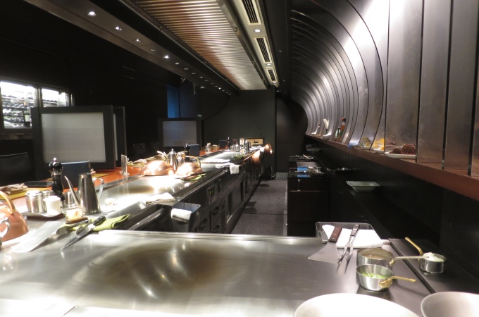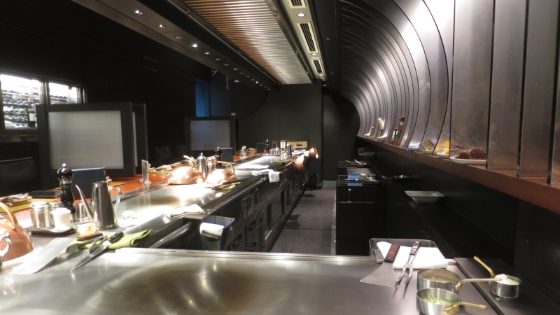 今日は、この席でした。向こうへ続く鉄板が見えて、なかなか壮観です。