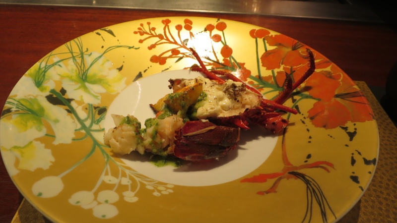 「伊勢海老の鉄板焼き」。チーズグラタンで、バジルバターソースです。